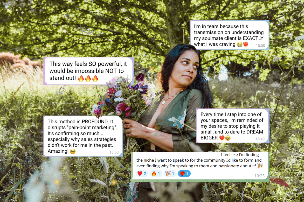 Dozens of medicine-women just like you are finally waking up to joyful sales from soulmate clients, without convincing or pain-point marketing…